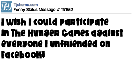 X is I wish I could participate in The Hunger Games against everyone I unfriended on Facebook!