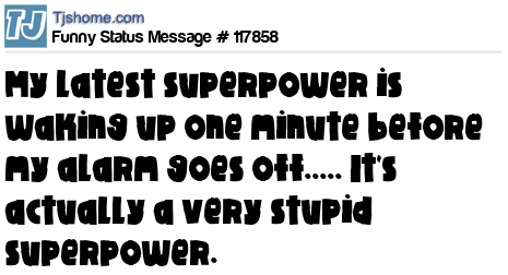 X My latest superpower is waking up one minute before my alarm goes off..... It's actually a very stupid superpower.