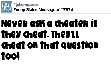 X is Never ask a cheater if they cheat. They'll cheat on that question too!