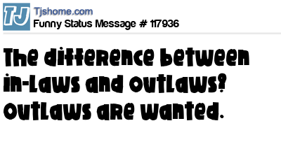 - # 70021 asks..what's the difference between in-laws and outlaws? Outlaws are wanted.