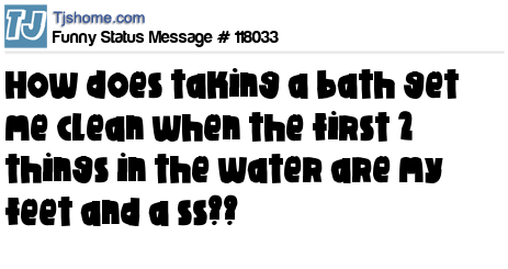 X says how does taking a bath get me clean when the first 2 things in the water are my feet and a ss??