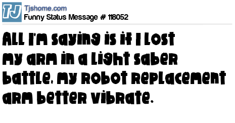 X says All I'm saying is if I lost my arm in a light saber battle, my robot replacement arm better vibrate.