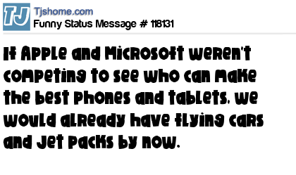 X If Apple and Microsoft weren't competing to see who can make the best phones and tablets, we would already have flying cars and Jet packs by now.