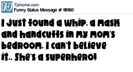 X I just found a whip, a mask and handcuffs in my mom's bedroom. I can't believe it.. She's a superhero!