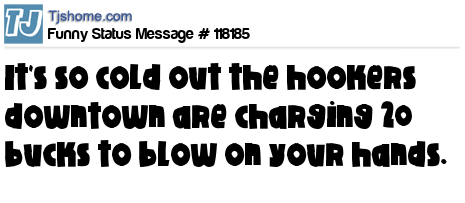 X is It's so cold out the hookers downtown are charging 20 bucks to blow on your hands.