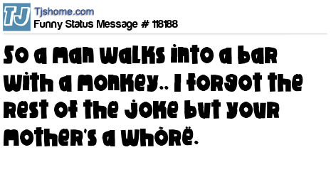 X So a man walks into a bar with a monkey.. I forgot the rest of the joke but your mother's a whòrë.