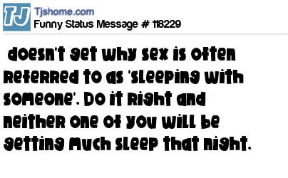 X doesn't get why sex is often referred to as 'sleeping with someone'. Do it right and neither one of you will be getting much sleep that night.