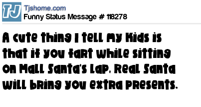 X A cute thing I tell my kids is that if you fart while sitting on Mall Santa's lap, Real Santa will bring you extra presents.