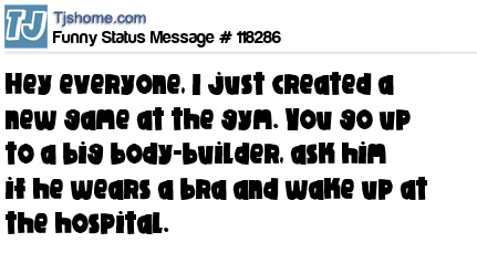 X says Hey everyone, I just created a new game at the gym. You go up to a big body-builder, ask him if he wears a bra and wake up at the hospital.
