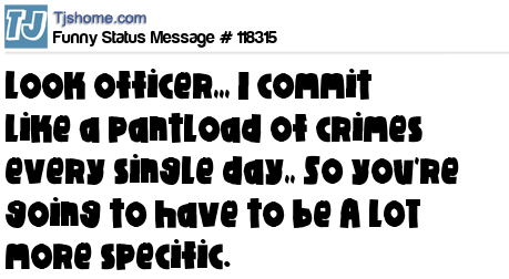 X Look officer,,, I commit like a pantload of crimes every single day,, So you're going to have to be A LOT more specific.