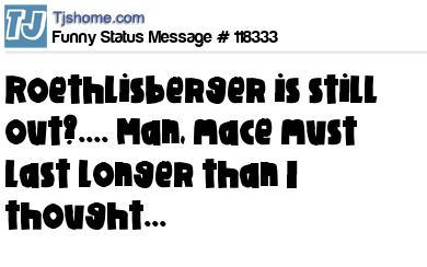X is Roethlisberger is still out?.... Man, mace must last longer than I thought...