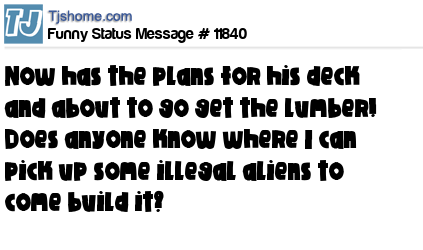 X now has the plans for his deck and about to go get the lumber! Does anyone know where I can pick up some illegal aliens to come build it?