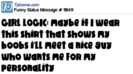 X says GIRL LOGIC: maybe if I wear this shirt that shows my boobs i'll meet a nice guy who wants me For my personality