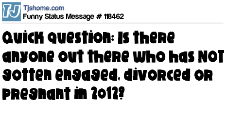 X is Quick question: Is there anyone out there who has NOT gotten engaged, divorced or pregnant in 2012?