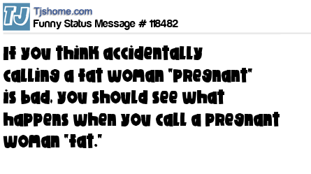 X says If you think accidentally calling a fat woman "pregnant" is bad, you should see what happens when you call a pregnant woman "fat."