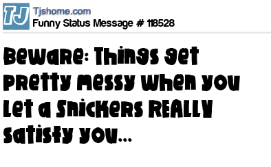 - # 68356 Beware: Things get pretty messy when you let a Snickers REALLY satisfy you.