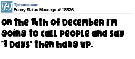 X is On the 14th of December I'm going to call people and say "7 Days" then hang up.
