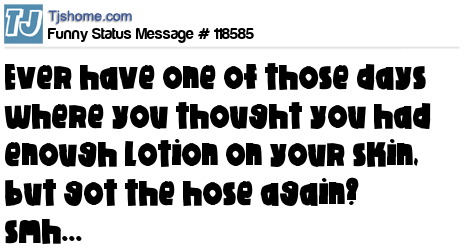 X Ever have one of those days where you thought you had enough lotion on your skin, but got the hose again? smh...