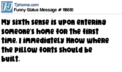 X says My sixth sense is upon entering someone's home for the first time, I immediately know where the pillow forts should be built.