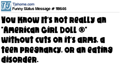 X You know It's not really an "American Girl Doll ®" without cuts on it's arms, a teen pregnancy, or an eating disorder.