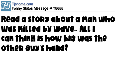 X Read a story about a man who was killed by wave.. All I can think is how big was the other guy's hand?