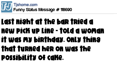 X Last night at the bar tried a new pick up line - told a woman it was my birthday. Only thing that turned her on was the possibility of cake.