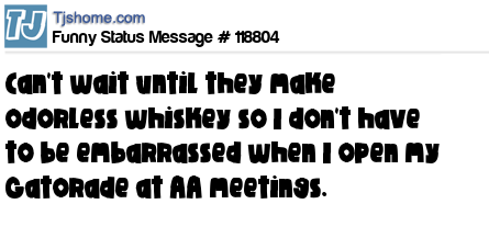 X is Can't wait until they make odorless whiskey so I don't have to be embarrassed when I open my Gatorade at AA meetings.