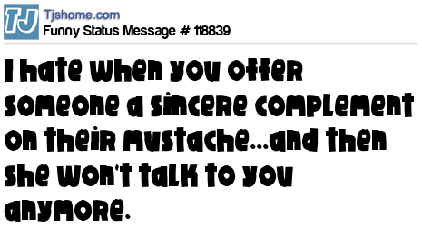 - # 121401 I hate it when you offer someone a sincere compliment on their mustache and then suddenly... She's not your friend anymore.