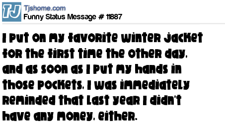 X I put on my favorite winter jacket for the first time the other day, and as soon as I put my hands in those pockets, I was immediately reminded that last year I didn't have any money, either.