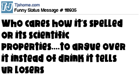 X says who cares how it's spelled or its scientific properties....to argue over it instead of drink it tells ur losers
