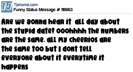 X says are we gonna hear it all day about the stupid date? ooohhhh the numbers are the same. all my cheerios are the same too but I dont tell everyone about it everytime it happens