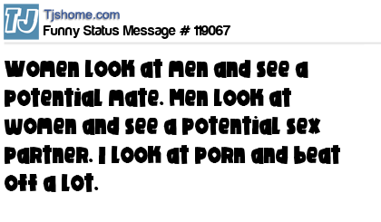 X says Women look at men and see a potential mate. Men look at women and see a potential sex partner. I look at porn and beat off a lot.