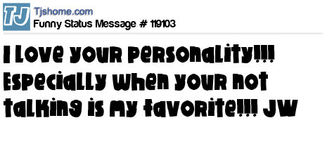 X is I love your personality!!! Especially when your not talking is my favorite!!! JW