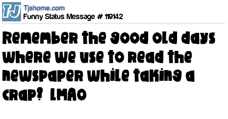 X says Remember the good old days where we use to read the newspaper while taking a crap? LMAO