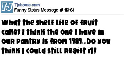 - # 81932 I was just asked what the shelf life was of " fruit cake " , all I could say was when's the rapture .