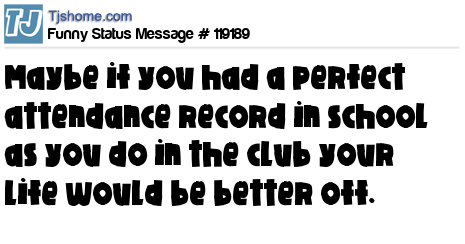 X says Maybe if you had a perfect attendance record in school as you do in the club your life would be better off.