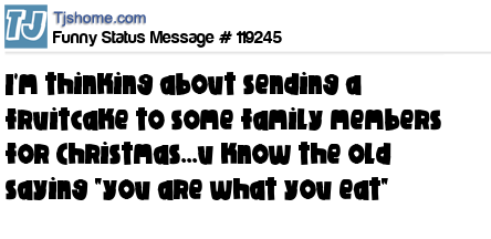 X says i'm thinking about sending a fruitcake to some family members for Christmas...u know the old saying "you are what you eat"