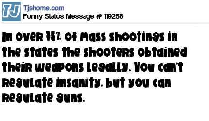 X is In over 75% of mass shootings in the states the shooters obtained their weapons legally. You can't regulate insanity, but you can regulate guns.
