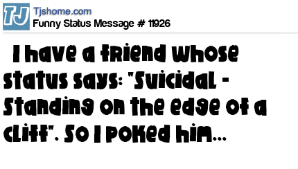 - # 106883 I have a friend whose status says "suicidal standing on edge of cliff'.... I poked him.