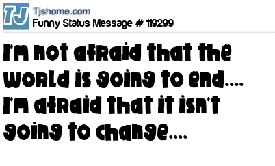 X says I'm not afraid that the world is going to end.... I'm afraid that it isn't going to change....