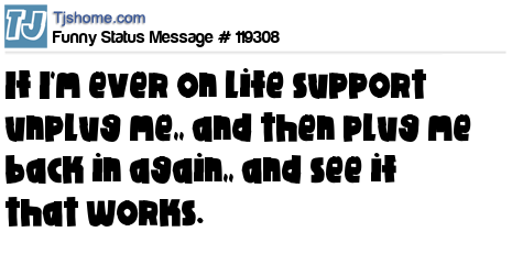 - # 188984 If I'm ever on life support, unplug me..... then plug me back in. See if that works.