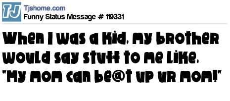 X When I was a kid, my brother would say stuff to me like, "My mom can be@t up ur mom!"
