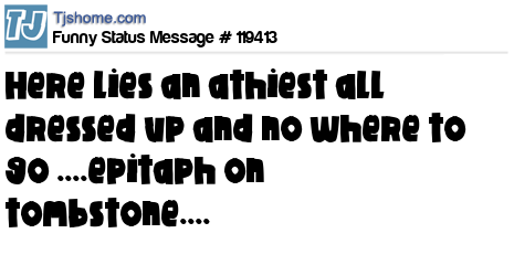 X is here lies an athiest all dressed up and no where to go ....epitaph on tombstone....