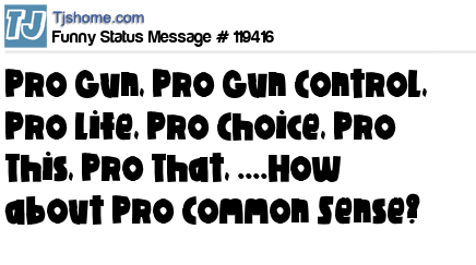 X Pro Gun, Pro Gun Control, Pro Life, Pro Choice, Pro This, Pro That, ....How about Pro Common Sense?