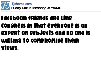 X Facebook friends are like Congress in that everyone is an expert on subjects and no one is willing to compromise their views.