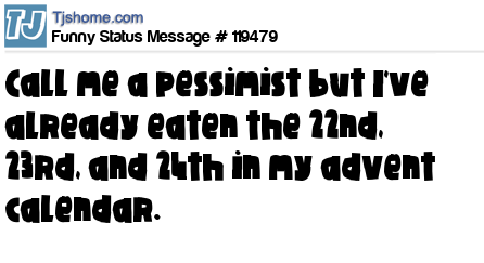 X is Call me a pessimist but I've already eaten the 22nd, 23rd, and 24th in my advent calendar.