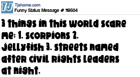 X is 3 things in this world scare me: 1. scorpions 2. jellyfish 3. streets named after civil rights leaders at night.