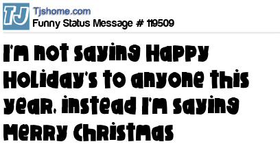 - # 173105 I've decided not to say "Happy Holidays" this Christmas Season .... I am going to go totally rogue and badass and say .... "Merry Christmas" ... instead!! .... Hope I don't ruin anybody's Christmas.