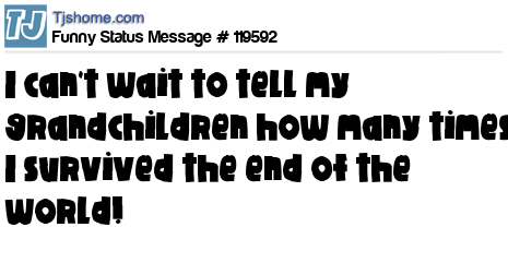 - # 202982 It's not too late to start convincing our grandchildren that the world really did end in 2012 and we're the survivors.