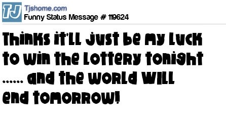 X is thinks it'll just be my luck to win the Lottery tonight ...... and the world WILL end tomorrow!